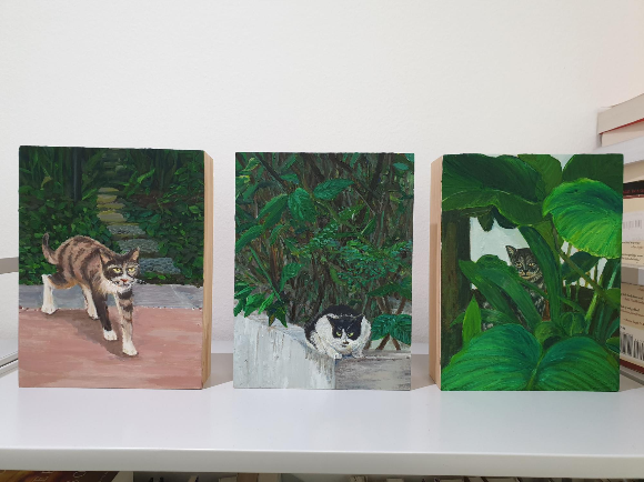 지금 새로 얻은 이 집은 면적도 그 전들 집 보다 작고 수납 공간도 부족하다. 이삿짐 박스를 풀면서 물감과 캔버스, 붓, 이런 저런 그리기 용품들을 이렇게 많이 사 모았나 싶을 정도이고, 그간 그려둔 그림들을 바라보며 이 아이들을 계속 품고 있어야 하는지 의문도 들었다. 허허, 사람이 이렇게 이기적이고 금방 잊는다. 싱가포르에서 이 아이들을 그려낸 덕분에 낯선 공간을 적응했는데 말이다. 그렇게 고마운 그림들인데 말이다.