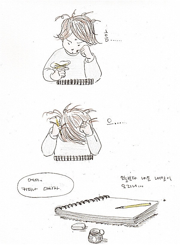 하다보면 나도 언젠가는 재미있는 이야기를 글과 그림으로 엮어 책을 만드는, 그런 사람이 될 수 있을 것 같다. 그러나 문제는 늘 생각 뿐이라는 거.