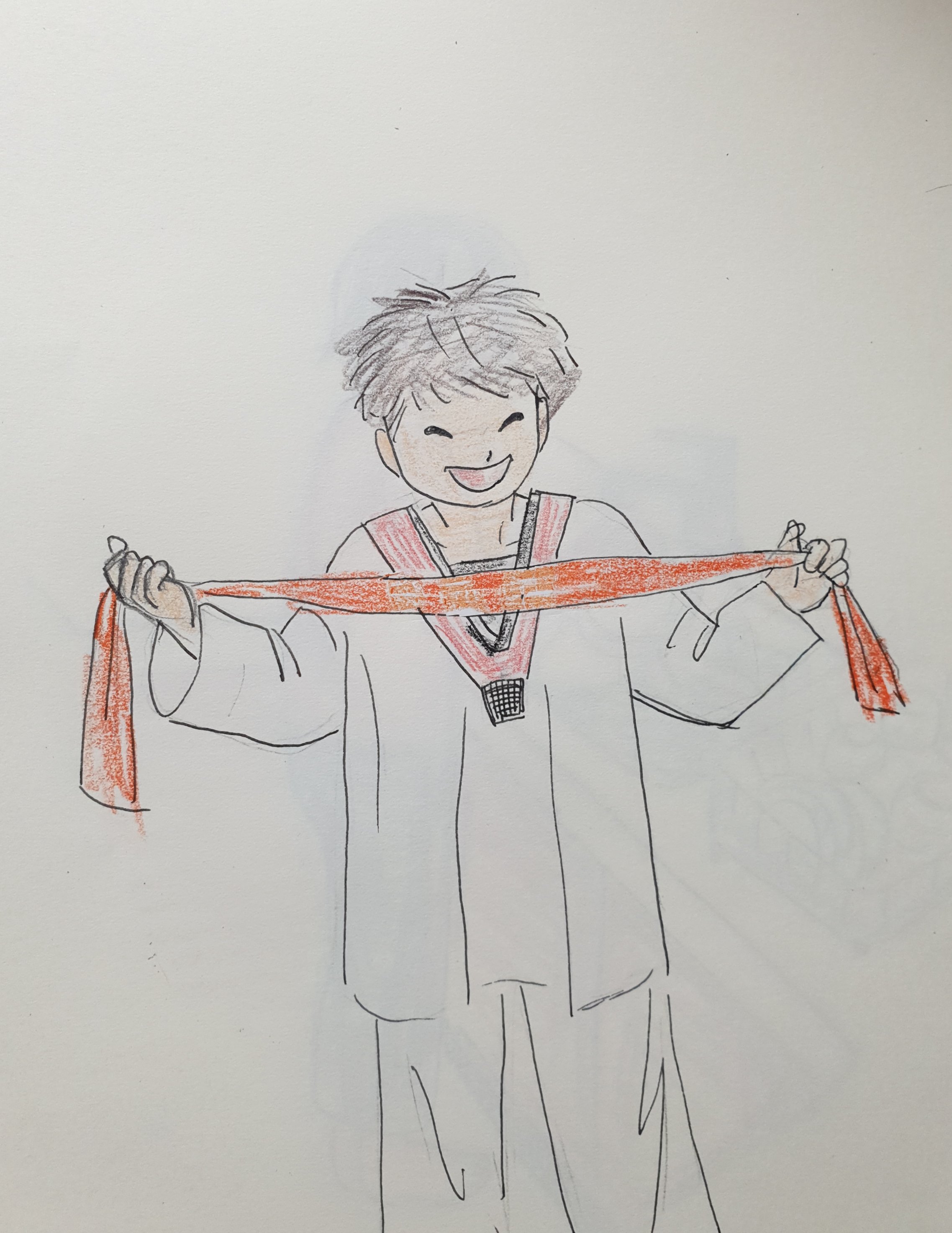 사부님에게 업그레이드 된 새 띠를 받아 기분 업 된 태권소년의 금요일